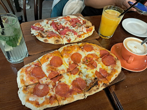 Read moreВпервые пришёл в это кафе со своей супругой и был приятно удивлён. Официанты отработали на 5 с плюсом. Время подачи блюд на удивление было почти на уровне, при этом официант(Богдан) с извинениями подал пасту, хотя по времени от нормы было буквально пару минут задержки. По поводу пасты-паста собственного производства(не аль денте) хорошая проварка, отличный соус. По поводу Римской пиццы-сборка на высоте, не смотря на то что в тесте чувствовалась манка, которая добавляется для помощи от пригорания. Помимо этого есть большой выбор кондитерской выпечки, более чем вкусной, отдельного внимания заслуживает слойка с яблоком и корицей. Заключение:есть совершенно незначительные минусы, но в любом случае было совершенно не жалко расплачиваться по чеку!!! Персонал отрабатывает на пятёрочку!!!...