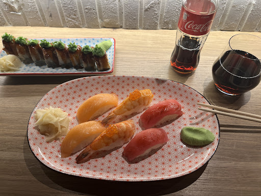 I saw many people recommending this restaurant on the internet, so I came here because of its reputation. The restaurant's kitchen is an open kitchen, facing the bar seat. Consumers can watch the chefs making sushi, steamed buns, ramen, rice, etc. in front of you. The chefs all wear gloves and are very clean. I ordered three pairs of nigiri sushi (salmon, tuna, shrimp), two California rolls (tuna, salmon&mango), an Unagi rice, an mushroom tempura and a bottle of Coke. The main material (salmon, tuna and shrimp) of the nigiri sushi are okay, but the rice is not, because the rice is taken directly from the rice cooker by the chef and is a bit hot, and it is not sushi rice with rice vinegar added. The rolls are delicious, especially with cheese inside. The Unagi rice is particularly delicious. The Unagi is make to order and the teriyaki sauce is also seasoned very authentically! The only drawback is that the Unagi are a bit small. The batter of the mushroom tempura is too thick, it's okay to eat it directly, but it's a bit salty and greasy after being paired with the sauce. Overall, this restaurant is very good, especially you can eat such good Japanese food in a European country.