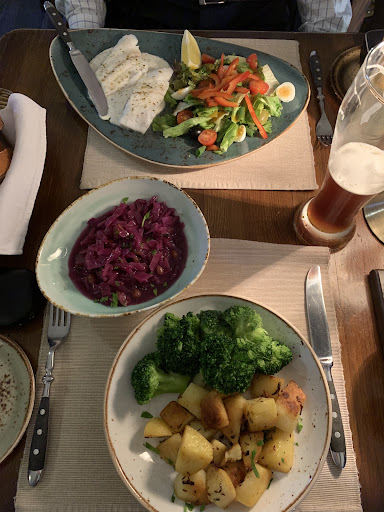 Read morePretty heavy on the meat, as one would expect at a German place. But I found some really nice veggie side dishes and my friend was very happy with his fish. The dark(ish), unfiltered wheat beer was excellent. We enjoyed the atmosphere, the German music, and our host and waitress were super friendly...