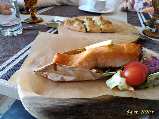 Read moreЗашли попить кофе. Администратор нас не встретил , так как, видимо, была очень занята чем-то или кем-то. Поэтому свободный столик пришлось искать самим. Понятно, что вечер пятницы, и в ожидании гостей почти все столики зарезервированы. С другой стороны, если бы администратор поинтересовалась с какой целью мы здесь, поужинать, посидеть или просто кофе попить, то могла бы и предложить один из уже зарезервированных. После того, как столик мы всё же нашли, меню принесли практически сразу. А вот официантку пришлось ждать минут 8. И произошло это скорее из-за неразберихи официанток между собой - столик был "на отшибе" и не сразу заметно новых клиентов. С моей точки зрения это тоже упущение администратора. Приняли заказ и обслужили очень быстро. Кофе хороший, Lavazza. К двойному эспрессо не забыли подать стакан воды. Торт Наполеон тоже оказался свежий и вкусный, почти как у тёщи. Оригинальная подача торта на тарелке на пергаментной бумаге. Из недостатков, помимо зарезервированных столиков, стоит отметить шумных бегают их по ресторану детей. Скорее, это не вина заведения - отсутствие в городе детских кафе, но в ресторане детям не совсем место. За некоторыми столиками слишком темно; человеку с ослабленным зрением не рассмотреть меню, а тем более чек. В целом неплохое заведение. Можно прийти и...