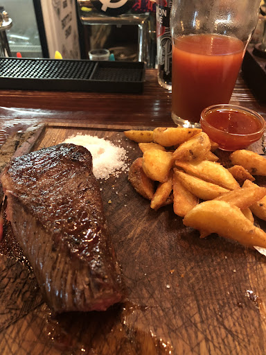 Заходил несколько раз. Место атмосферное, приятное, но его нужно докрутить. Это пивной бар, тут нет коктейлей, вроде джин-тоника. Я не фанат пива и получается, что тут сложно найти напиток для себя. В туалете и на столах уж очень дешёвые салфетки. Я понимаю, что вы их покупаете много, но если вытирая руки салфетками, они все разваливаются - это неприятно. Начните пожалуйста закупать нормальные полотенца и салфетки. Что по еде. Стейк за 2к - резиновый как не знаю что. Его прямо тяжело жевать. За такую стоимость я хочу нежный стейк. И лучше заплатить чуть больше в более дорогом месте, но зато получить то, после чего не будет болеть челюсть. Да, к нему дают картошку, но она сделана неправильно и впитала в себя тонну масла. Бургеры - ну тут просто всего накидал. Я фанат бургеров из бургер хирос. Они там разные и булочка мягкая, и котлеты сочные. А здесь - ничего запоминающегося. Ниже был отзыв - "лучшие стейки, что я пробовал". Так вот - например в Узорах, что в 20 минутах ходьбы от этого места. Модно тоже взять стейк. Там маленький кусочек мачете. Это гораздо более простенький стейк, но он вкусный. Он нежный. И мне проще взять два в Узорах, чем один у вас. Жалко, я недавно в этом районе и ищу себе атмосферный бар. Этот - точно им не станет. С пивом потянет, да. Он рассчитан на другую аудиторию. Если купите нормальные салфетки (чтобы после н х не хотелось снова мыть руки). Если купите нормальное мясо. Если добавите в меню хотя бы что-то для людей, которые не любят пиво. Я бы стабильно к вам заходил. Тем, кому понравились тут бургеры - советую зайти в бургер хирос. Тем, кому понравились тут стейки - советую зайти в Торро. И даже цена там не...
