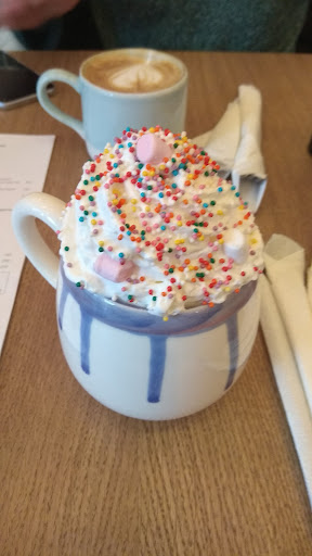 So initially we were going to visit another cafe nearby, which is only steps away from this one. By the will of destiny, we entered the wrong door and found ourselves here. The place isn't too big, but it has a couple of group tables, about 5 tables for couples and bar stools by the bar (oh what a surprise). The interior is very well thought through, it's creamy, soft, very home-like. The staff is friendly and helpful, and I think is LGBTQ-friendly. And now the most important thing that people come here for: the food. Hot drinks are amazingly delicious. I ordered the 'Bubble' - coffee with bubble gum taste, whipped cream and marshmallows. The thing was like a dessert, really. And then there are actual desserts. The variety of cakes and other snacks is astounding. I chose the 'Captain America', and, boy, what a lovely thing it was! Sort of honey, yogurt, fresh (!) berries on top and cinnamon. What I loved about the food is the size. It was a proper piece of cake, probably even too big for me. And yet it was so good that I felt obliged to engulf it. No regrets. Even though the place is expensive: 850 RUB for the coffee...