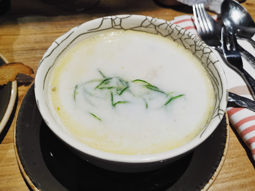 Были дважды в обеденное время. Очень атмосферно. По еде - наверно, самое вкусное место из всех ресторанов за это посещение Москвы. Но до чистой 5-ки не дотягивает, скорее 4++. Горячее все отличное, салаты тоже. А вот «сырые» опции так себе. Гребешок весь залит соусом (который, к слову, вкусный), это не из области сашими, да и промо-фото слишком отличается. Крабовая фаланга вареная, а обещали сырую и только ошпаренную. Тако с креветками восхитительное, но когда пришли на следующие день и заказали тако, выяснилось, что «тако кончилось». «Кончится не могло, это глупо!!» (с) Тартар из лосося никакой, и количество смешное - как спичечный коробок, порезанный на 4 части. А вот все остальное - паста, рыба, вонголе - отлично, баланс вкусов на высоте. Ну и не могу не упомянуть сервис. вот честно, я не притязательна. Совсем. Но тут такой махровый «pocker face», что аж дурно становится. Каждый взгляд - это целая невысказанная, но прекрасно отыгранная история «зачем вы сюда приперлись? Че надо?». Причем в первое посещение оставили больше 10% чаевых, на следующий день была та же официантка, я думала, хоть в этот день смягчится немного. Ни фига. В целом рекомендую, но будьте готовы к...