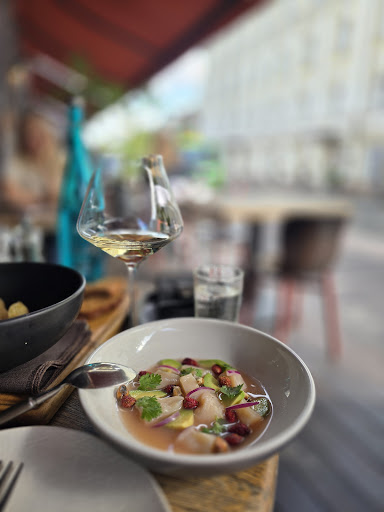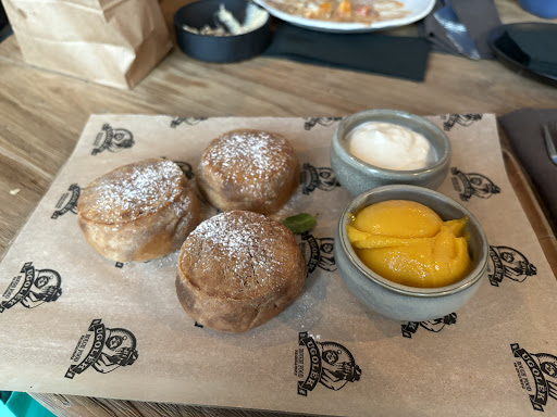 We had reserved a table in advance for Saturday brunch. Almost all the tables were occupied. Unfortunately, the menu did not include the special blinis that we came to try, which was disappointing. Instead, we ordered shakshuka with wild mushrooms and truffle. The dish was huge, we shared it with my friend. I also ordered cottage cheese pancakes (syrniki) and definitely expected more from them, although the mixed cream and passion fruit sorbet on the side were really nice. Raf coffee with the lavender was delicious, as was the lychee version—I had two, even though I'm not a big coffee fan. I also took a pistachio cream croissant to go, and I liked it; the cream was just right, not overly sweet. The place made it into the Michelin Guide for 2022, and I believe it's well-deserved, the food and service are really good. I would love to revisit the spot for lunch or dinner and try the...