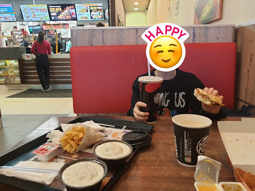 Read moreПосле уроков много тинейджеров. Ведут себя вызывающе. Примеры: кладут ноги на стол, курят вейп,лезут к малышам в игровую ,брызгают из крана бесплатной газировкой и это не одна компания, а разные.Чувствуют безнаказанность. Отдыхать из-за них тяжело. Жалко охранника, настоящий, гоняет их в меру своих возможностей и компетентности. Охраннику много+. Персонал как и везде в таких заведениях,приятен и мил. Еда по моему мнению, по вкусовым качествам отстаёт от известного конкурента, но не сильно. Поэтому, если ты тинейджер-там круто. Если молодая пара и вы нравитесь друг другу вам на всё пофиг кроме визави. Мамы с малышами проходите до окончания уроков. Бабушки, о да, вы получите много пищи для разговоров о...