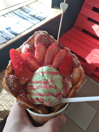 Read moreВкусные вафли с мороженым. Напитки - некоторые на любителя, некоторые вкусные, а некоторые в виде кофе и имбирного чая, мягко говоря, на среднем уровне.