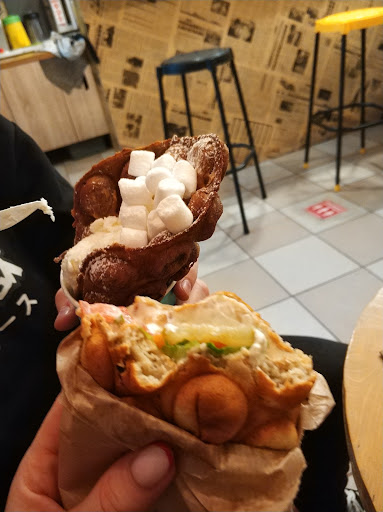 Долго хотела попасть в это место.Выбор не велик,но набить живот можно.Для начало хотелось что-то серьезнее мороженого по этому взяли сэндвичи которые так же вафельные,но с пряными специями.Я была сыта,а вот племянник нет.Заказывать мороженое уже не стали из-за вафли,есть её снова не хотелось.Бабл Ти в этом месте отвратительный,шарики которые должны быть с жидким центром оказался обычным мармеладом который липнет к зубам.Конечно,чай,горячий шоколад и разнообразный кофе могут заменить "бабл ти".А вот само помещение в плачевном состоянии,не считая закутка у барной стойки.Забежать за мороженым и кофе...