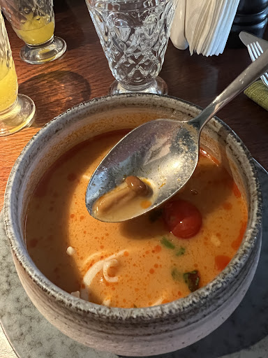 Read moreГрязно, шумные посетители (кавказцы). Стулья старые (просиженные), на столах отсутствует скатерти, следы прожжённости. Обслуживание крайне не приятное. Нас было 9 человек. Принесли сначала троим блюда, а остальное ждали 30 - 40 минут. Потом подали салат "цезарь". Салат приготовлен отвратительно. В салат положили вместо гренок два куска необжаренного чёрного хлеба, два маленьких кусочка засушенной курицы, один пополам разрезанный помидор черри, листья салата и яйцо пашот. Салат не посолен, отсутствует соус заправка. Да, ещё с боку положили 1/4 грецкого ореха. Мясо от шефа готовили больше 2 часов, пришлось отказаться. Офицант пытался выгородить шеф-повара, пытался сказать что мясо готовили в духовке. А духовка плохо в тот день (воскресенье 07.02.21) работала. Хотя по технологии мясо от шефа не готовится в духовке. Праздничный вечер был испорчен. Общее впечатление грязь, плохое обслуживание, не...