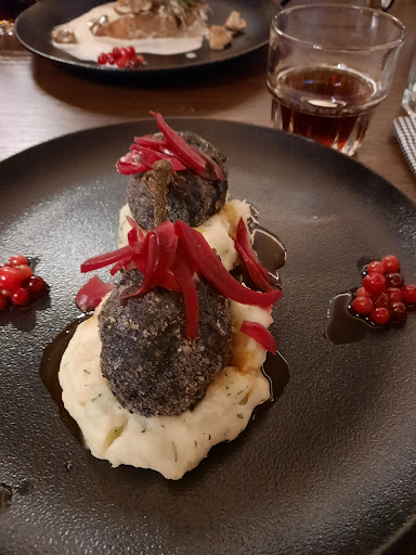 Read moreПосещали это заведение семьёй!Всем очень всё понравилось.Блюда советую брать те что вы никогда не пробовали!Например:Тар тар из говядины,чёрные котлеты,Настоящий шоколадный фондан.Цены приемлемые!Есть только два минуса:Хостес-Человек просто сказал что идите наверх там вам всё расскажут,но все с куртками вследствии раздеться не предложили, где туалет не показали.Это неприятно!Второй минус отсутсвие прям многих позиций в меню!Например:Нету вообще домашних сыров хотя в меню есть.Из 8 позиций морепродуктов и рыбы в наличии только две позиции да и такая ситуация...