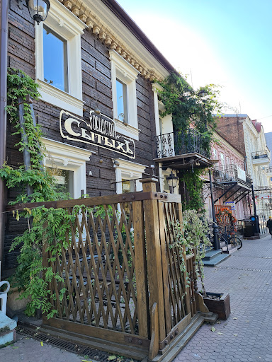 По порядку о том, почему это место достойно внимания: 🙏🏼 Сервис. Удобно забронировать столик, быстро отвечают в вотсап. На входе встречают. 🥘 Еда. Вкусные блюда, напитки. Разнообразное, не скучное меню. И красиво оформленное, особенно понравился пункт про возможные аллергии на что-то или кого-то, включая официанта 😀. 🍺 Квас весьма хмельной, учитывайте это. 🕰️ Интерьер. Красота неописуемая! Как человек, трепетно относящийся к культурному наследию, очень рада, что такое место сохранено и поддерживается. Всё антиквариат, 19го и начала 20го века. Официант Никита любезно провел экскурсию. Играет классическая музыка. В зале прохладно. 🪴 Отдельного внимания заслуживает большая веранда. Чисто. В уборных есть все, что нужно.