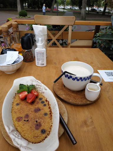 Была первый раз, качество еды хорошее, подача быстрая, порции большие. Брала салат: помидоры, руккола, страчателла и креветки. Когда читала состав понимала, что комбинация странная, но люблю креветки и страчателлу, решила попробовать....Все продукты хорошего качества, жаренные креветки идеальные, в меру мягкие, в меру упругие, сочные, страчетелла замечательная....но все вместе на вкус это не сочетается, совсем. На десерт взяла крем брюле, хорош...порция большая и действительно похож на крем-брюле, а не на заварной крем, как частенько бывает. Для первого посещения твердая пятерка, с минусом за несочетаемость в салате. И да, для Ростова дороговато: салат почти за 1000🤔....у нас всё-таки не Москва. Вторая серия. Не знаю почему но Гугл не даёт написать ещё один отзыв, поэтому впечатления после второго посещения пишу тут же - разочарование в кубе: заказала вареники с вишней, это просто какая то чудовищная жуть, а не вареники. Начну с того, что, несмотря на самый сезон, они приготовлены из мороженной, а не свежей вишни, сверху блюдо залито какой то вишнёвой субстанцией, типа жидкого киселя, ну а как ещё можно добавить сочности блюду и МОРОЖЕННЫХ ягод, только залить их жидкостью....🙈, к этому шедевру подаётся крошечная посудинка со сметаной, буквально одна столовая ложка, вот прямо последнее от сердца оторвали.... На десерт взяла шоколадный фонтан, это просто - бее 🤢,они готовят его в чашке, просто тесто, от фондана там только название, все остальное вызывает ассоциации с уроками труда в школе для малолеток, на которых девочки учатся готовить.... В общем во второй раз это была не еда, а какая-то порнография. Оба раза очень долго приходилось ждать пока кто-нибудь захочет узнать: все ли хорошо и не нужен ли расчет или ещё что, еду поставили и всё, про клиента можно забыть. Вряд-ли я приду сюда в третий раз, максимум сыра...