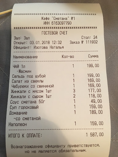 Были в Ростове проездом, специально заехали в Сметану, т к очень хвалят.