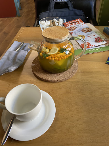 Read moreVery friendly casual restaurant serving 24 hour breakfast, coffees, salads, hot entrees, and luscious desserts. Seems to specialize in a variety of pelmeny and dumplings. We had vegetable salad (cucumber, yellow peppers, tomatoes, onion, radishes), Caesar salad w shrimp (lightly toasted, great flavor), pelmeny w meat filling in buttery broth w sour cream, plus dessert. Add sparkling water, peach juice, and cherry "lemonade". We left totally refreshed from a long walk...