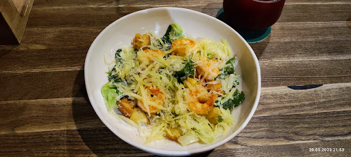 Достаточно вкусно, уютно и чисто, приятные цены, но персонал оставляет желать лучшего. Всё впечатление от места испортила официантка по имени Ангелина. Обслуживание просто отвратительное. Началось всё с того, что она принесла нам чайник чая без сахара, но ладно, бывает со всеми, забыла, но после того как мы попросили принести нам сахар, она просто забила и просьба в дальнейшем звучала неоднократно, раз на 3ий мы дождались сахар, конечно чай уже остыл. Салаты мы ждали 30 минут, горячие 50 минут. И видимо мы ждали это так долго не из-за кухни, т.к. когда нам подали горячие, оно во все не было горячим. За тем мы попросили меню, меню нам так же не хотели нести, пришлось брать самим (с другими столиками она вела себя абсолютно иначе, не отходила от них и постоянно общалась). Финалом было когда мы попросили счёт, оставили наличные на столе и ждали, когда она нас всё таки расчитает, но этого не произошло, пока мы сами не подошли к ней. И конечно же посуда на нашем столе убиралась очень редко, хотя другие официанты к своим столикам подходили забрать даже 1 бокал пустой. Смотря на работу других официантов мы поняли, что нам просто не повезло к сожалению, но повторюсь, что впечатление о заведение было...