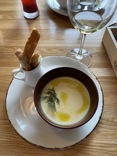 Однако, минусы перевесили: Суп рыбный: Не наваристый, водянистый. За настоящим рыбным супом лучше сходить в "Рощу" (это не реклама). Отдельная история это официанты. Уважаемые владельцы, обратите внимание на обучение персонала! Первое , что нас смутило это группа официантов (человек 5, включая хостес) стояли и разговаривали в проходе, игнорируя ожидание гостей, нуждающихся в чеке или готовых сделать заказ. Официантка Дарья закатывала глаза в ответ на вопросы и не могла четко ответить на вопросы о блюдах. Грязная скатерть. Форма официантов грязная. Недопустима уборка крошек со стола на диван и стулья. Непонятная ситуация: администратор пригласила уборщицу (без формы, внешний вид оставляет желать лучшего) для уборки в зале во время работы ресторана. Уборщица протирала пол под столами, создавая неудобства для официантов и гостей. Очевидно, ресторану необходимо уделить больше внимания обучению персонала...