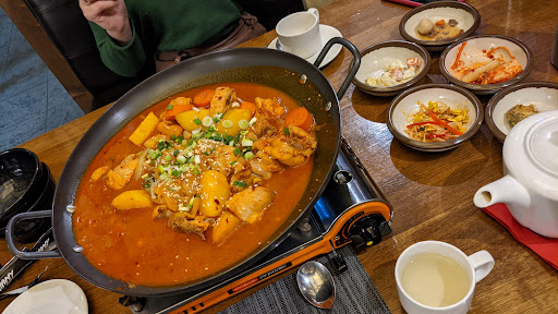 Read moreМы конечно не знатоки корейской кухни в полной её мере, но в нескольких местах супчики ели, так вот, это не место не про них (супчики), тут все основательно, много и сытно. Серьезно, порции так что выкатываешься, поэтому проще заказывать 1 на 2их, если вы не особый ёлок как мы 😅 Я свинину не ем, поэтому оценить блюда с ней у меня не получилось, но курочка в кляре и пибимпам мне зашли прямо на ура и ещё половина ушла вместе со мной домой, я же говорю порции ого-го)) даже ребёнок курочку заценил) Кстати о детях, да там есть детский уголок, но вот детского меню нет, поэтому если ваш ребёнок не есть корейскую кухню, накормит его особо не получится 🤷♀️ Поэтому лучше идти компанией друзей и хорошо посидеть, точно не...