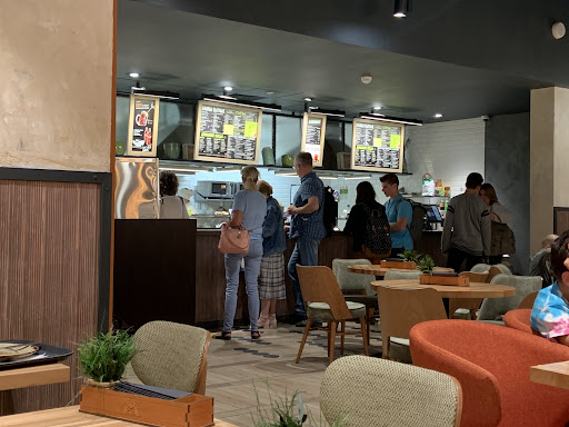 Read moreСкажу сразу: по месту, качеству еды и персоналу я бы поставил 5. Однако есть большое НО: огромные очереди. Дело в том, как работает Теремок. У поваров нет списка еды, который они должны готовить и нет места, в которое они должны определенный тип еды ставить. Из-за этого получается путаница, а когда много человек, по три заказа одновременно и при этом один кассир... Люди разворачиваются и уходят. При среднем времени обслуживания от силы в минуту во время обеда/завтрака/ужина оно легко может дойти до 15-20 минут. Да, стояниях в очереди, а потом ожидания заказа... Но если Вы готовы подождать и не хотите травить организм фаст-фудом - лучше места я не знаю. (Крошка-картошка, увы, переживает упадок, особенно в качестве) UPD: забыл сказать про фоновую музыку. Она, скажем так, на любителя....