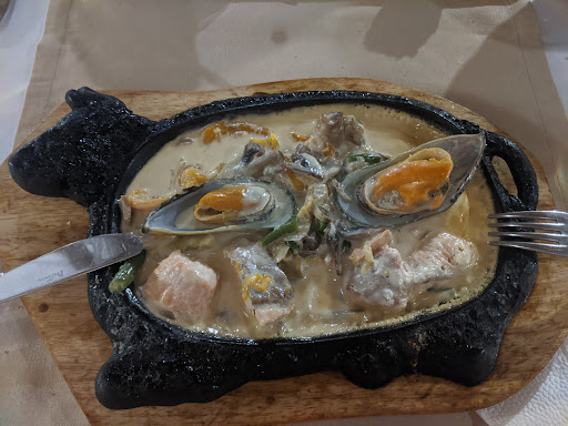 В этом месте мы пытались поесть дважды, так как его сильно рекомендовали наши друзья. В первый раз приехали с ними, но не остались, потому что в ресторане чрезвычайно громко гремел банкет. Гремел при этом - Ваенгой, Кругом и прочим блотняком, который у нас почем-то именуется шансоном и который почему-то так любят на гулянках в регионах, а так же таксисты независимо от локации. Что музыка тише не станет нам заявили категорично и мы уехали.