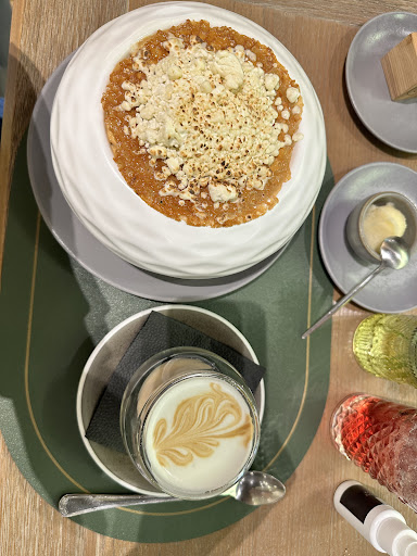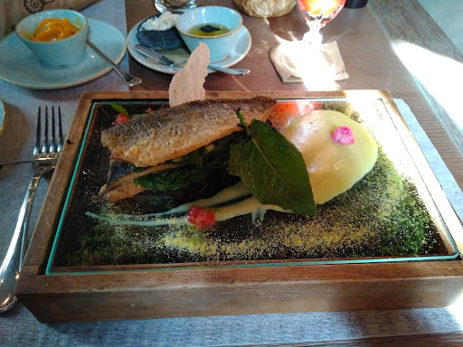 Read moreХорошее место, кухня действительно авторская, сервис достойный, дают комплимент - закуску из страчателлы и кабачковой икры, лимонад из винограда и алое очень насыщенный. Брала салат с морепродуктами и маринованными цуккини - все свежее. Мидии свежие, легко отделяются от панциря и не резиновые, нежные. Обратите внимание, что это теплый салат - мидии и креветки запечены, очень вкусно и очень питательно - в принципе мне бы хватило и только салата. Но! Был один момент - зря посолили дополнительно зелень- соус и так насыщенный, лучше конечно соль отдавать на усмотрение клиента и уточнять нужна ли она - у меня в наложении с соусом получился перебор в конце потребления. Рапана в наличии не было, но попробовала горячую закуску из мамалыги, сыра и ягненка на гриле - тоже ставлю большой и жирный плюс. Интересно что здесь сбалансировано сочетание нейтрального сыра с острым соусом для ягненка - они прямо идеально ужились в одном блюде. А яблочное мороженое на десерт целое представление: при тебе его обжигают до получения карамельной корочки и запеченных маршмеллоу! В общем ставлю 5 из 5, а соль думаю все же просто...