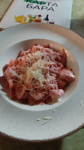 Read moreЗаказали барабулю жаренную. Это была гадость!!! Горькая (рыбу не патрошили), пересушена. Чувствуется вкус только потрохов и сухая пережаренная шкурка. Вкуса самой барабули не ощутили! Самое вкусное в этом блюде было: чеснок и лимон! Людей очень много, официантка "в мыле", все время трясла футболку и дула себе под футболку, чтобы остыть - она убеганная, замотанная была. Чтобы все успеть говорила очень быстро, кратко, как тароторила. Но, когда вам за секунду перечислили три варианта лимонада, это скорость приема заказа не увеличивает. Даже наоборот, приходится спрашивать снова. Многого из меню, кстати, не было. И скорость сбора заказов увеличилась бы, если б коррекрировали свое меню. Например, лимонады домашние: в меню указаны 3 разных вкуса, мы заказываем, а нам в ответ "Этих двух нет сегодня". На вопоос "Что есть?" - называют то, что в меню не указано. Понравились нам мидии в сливочном соусе на вкус и хачапури нарта. Фетучини с лососем в икорном соусе были хороши, но ощущение, что соус в "Магните" ближайшем купили и в макароны просто примешали. Ну и вернувшись к началу, мы слишком долго ждали, чтобы к нам подошла официант. Хотя сама официантка приветливая. Музыка живая, вроде певица профессиональная. На втором этаже слышно хорошо, но разговорам не мешает. Стены скучно белые, никакого дизайна нет. Зато понравился сан.узел - там как раз...