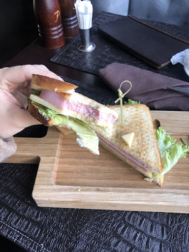 Забежали на завтрак, заказали сразу кофе. Поняли, что в меню нет ничего, чем можно было бы перекусить утром, хотели уйти, но кофе уже готовили. Уточнили про завтрак- оказывается он есть! Просто нам не принесли меню и на вопрос «Почему же вы нам не предложили завтрак в 9 утра?!» мне официант ответил «Просто меню с завтраком лежит отдельно, ничего страшного, можно же попросить!»😳 Да я уже от отчаянья спросила, я бы встала и ушла, если бы не торопилась и сходу не заказала кофе! Выбрала сэндвич- это самый отвратительный сэндвич, который я ела. Сделан небрежно, выглядит не аппетитно. Сыр нарезан разными кусками, которые выпадают, соуса практически нет. В одном очень толстый кусок ветчины и сыра, что аж хлеб не чувствуется, в другом нарезано очень тонко. Ресторанный сэндвич не должен быть похожим по виду и на вкус на домашний...