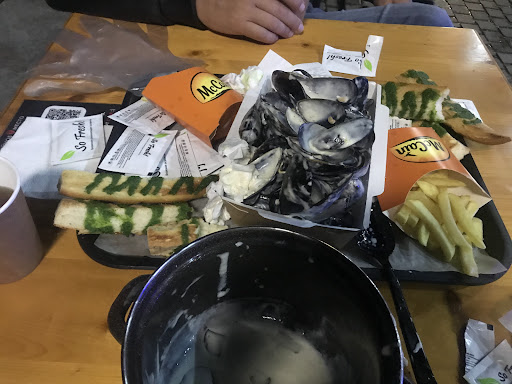 Очень вкусно, видно что мидии очень свежие, большие, хорошая подача с картошкой фри и гренками. Порция очень сытная на девушку 50-60кг, я видела что некотоые мужчины брали и 2 порции. Я пробовала мидии в соусе том-ям и томатном соусе.