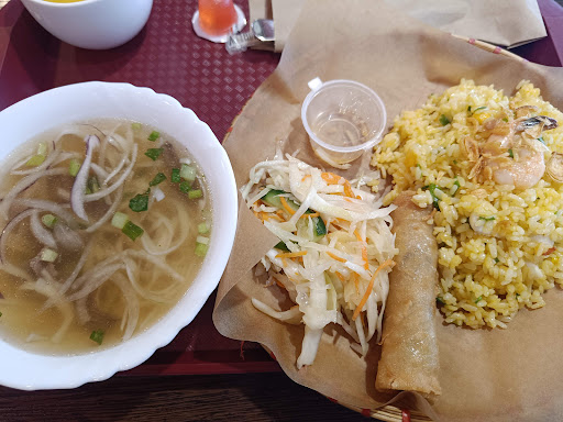 Ну это точно не на 5 звёзд заведение, как здесь многие оценивают)) Возможно, некоторые пробовали впервые эту кухню. Но для более искушённых гастроэнтузиастов место будет достаточно скучным. Забегал сюда на бизнес-ланч, взял фо-бо с говядиной и рис с морепродуктами за 380р. Также на тарелку кладут салат и нем с мясом. Фо-бо средний - наваристый бульон, но преступно мало лапши и мяса. Дайте больше супа! Из морепродуктов в рисе 2 нечищенные креветки и пара колец кальмаров. Всё! К чаю дают вкусную желейную конфетку. Специально идти точно не стоит, только если пообедать...