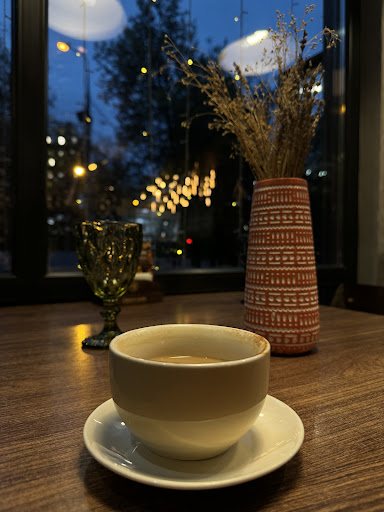 Read more4 за глинтвейн и хорошего официанта. Официант, с его слов, сегодня, 23.12.21, вышел первый день, но очень хорошо работал. Ответил на все вопросы, был очень приятен в общении. Приятная обстановка, чистый туалет. Уютно, столики отделены друг от друга предметами интерьера, вид из окна хороший. Тепло.