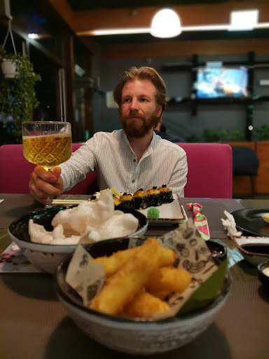 Сейчас ставлю 1 звезду. И вот почему: 13.09.21 в вечернее время пришли поужинать, и это было нечто... Рядом моет хлоркой и дезинсектором уборщица полы, у нас полный стол грязной посуды, которую официанты видят, но не подходят её убрать. Кнопка вызова не работает. Кухня была "никакой", в том ям курица пересоленная, до невозможности её употребления, поэтому есть не стали её, грибы полусырые, сам суп ненаваристый. Роллы принесли холодными, хотя это были запечённые роллы.(менеджер объяснила тем, что официант просто принёс их поздно) Салат был испорчен тем, что в нем было слишком много уксуса... Менеджер в качестве извинений предложила десерт... Конечно, он же готовый, и куда-то надо десерты девать, жалко выкидывать. Извинения за неудобства - на моё настроение не повлияло. Уже дважды разочаровался. Не советую.... Ах да, морс был вкусный, это та самая водичка с облепихой в районе 500 руб Итог: Хотите вкусно поесть и нормальное обслуживание - не в этом месте. Не первый раз выхожу с таким настроением, и теперь...
