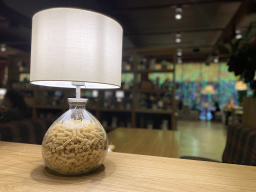 Read moreЕсли кратко, то вкусно, дорого, шумно. Заказывали язык, говяжьи щечки, пиццу пеперони острую и лимонад облепиха+маракуйя. Лимонад очень вкусный. Но льда многовато. Язык невероятно вкусный и супер нежный. А перечный соус просто огонь😍 Говяжьи щечки тоже мега мягкие, но вкус не впечатлил - совершенно обычная тушеная говядина, как дома. Пицца неплохая. Тонкое тесто. Острота умеренная но заметная. Но хотелось бы значительно побольше колбасы. Потому что пицца больше была похожа на маргариту, чем на пеперони. Тем более что вкус пеперони полностью терялся за остротой халапенье. Порадовал болгарский перец в пицце тем, что не был мягкой квашней а немного хрустел. Меню разнообразное. Цены очень высокие. Приятно порадовало, что здесь есть возможность самостоятельно выбрать состав для пасты. Но огорчилась, что из соусов могут предложить только сливочный. А так хотелось песто😔 А если все-таки попытаться замутить офигенно вкусный состав, то боюсь что это обойдется дороже чем говяжий стейк😱 Поэтому решила воздержаться😐 Интерьер приятный и уютный. Очень хорошо продумано разделение зон - высокие перегородки с растениями. К сожалению черезчур многолюдное место (в том числе много детей), от чего очень шумно. Словно в столовке. От такого интертера ожидаешь спокойного и тихого времяприпровождения. Но, скажем, книжку почитать или поработать за обедом здесь точно...