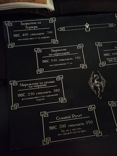 Read moreБыли проездом в Москве и решили посетить данное заведение, т.к. очень любим данную тематику. Из позитивного - присутствует антураж из мира ведьмака, названия меню - в общем есть некое погружение. Из отрицательного - когда зашли, обнаружили, что занято максимум половина столов, обрадовались, но нам сказали, что все занято и предложили присесть на веранде, которая находилась на заднем дворе, не имела ни намека на антураж и выглядела, как простите в обычной пивнушке, мне было бы стыдно туда сажать людей, с учетом атмосферности места. Пришедший официант (которого пришлось довольно долго ждать, выглядел и вел довольно неприветливо, может день у человека так сложился, всякое бывает), на вопрос нельзя ли внутри как-то сесть, сказал, что можно было бы на баре, но у вас чемоданы, наверное вам поэтому не предложили. В итоге мы ушли и сложилось впечатление, что нас просто не хотели обслуживать. Если столики забронированы, ну хотя бы таблички ставьте, я чуть ли не первый раз вижу, что половина мест свободна, но при этом мест нет. При этом, времени у нас было не много и сесть возле бара было бы отличным вариантом, но нам по каким-то причинам не предложили такого. Надеюсь, что в следующий раз, если там окажемся, минусы уйдут, т.к. тематика очень интересная и вдвойне жаль, что вот так...