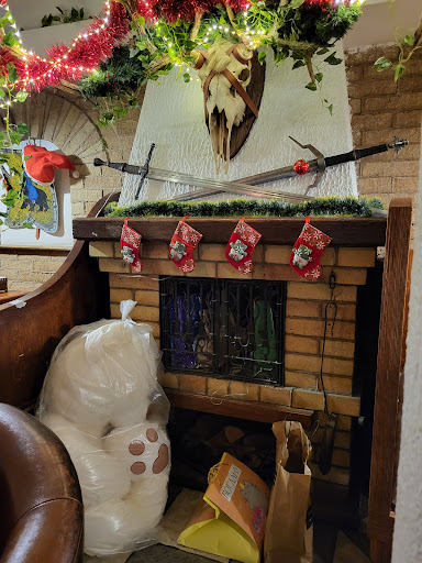 Read moreАнтураж прекрасен но..Всё остальное просто беда. При бронировании нам отказали, сказав что все занято на весь день. Потом всё же нашли столик для нас, но прийдя, мы увидели пустой ресторан, то есть реально мест огромное количество..я не поняла почему не хотели бронировать. Касательно атмосферы- Крупный бритый мужчина (скорее всего менеджер) сидел в зале, громко раздавал указания персоналу, вёл себя как дома, за одним из столов переобувался..рядом с ним чувствуешь стресс. В зале внизу стоял компьютер, валялись везде грязные провода. Мы пришли 3 января, специально забронировали стол у камина..мы попросили его включить, но нам отказали, сказав что там стоят подарки для сотрудников..какие туда ходили и там копошились..прямо перед нашим столом..вместо тепла и уюта камина мы получили стресс, холод. Туалет не стилизован, плитка отвалилась, кран сломан. Атмосфера просто ужас, хотелось бежать оттуда. Еда..как можно испортить рёбрышки..они были просто варёные. Колбаски были такие сухие что их тоже есть не стали. Полное разочарование и стресс. Никогда больше не пойду туда. Как выглядел камин, смотрите на фото..я сначала думала что там пакет с мусором стоит, а это завернутая в целовал игрушка-подарок...сидеть ужасно тесно, ноги не помещаются под столом, максимальная "выгода".Просто...