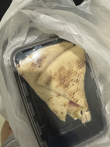 Попросили с собой положить остатки пиццы, положили начинкой вниз, фото прилагаю. Вопрос зачем так делать и как это потом есть. Персонал необученный отталкивающий с недовольным лицом сует листочек для чаевых на середину стола. Вопрос для каких чаевых. В целом не хотелось платить и за еду, которую подали через час при условии полупустой...