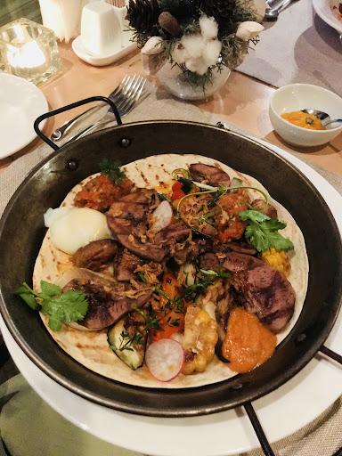 Read moreПобывала здесь на юбилее у друзей. Уютный зал, есть летняя веранда. В зале нет кондиционера, но комфортная вентиляция, за что респект. С ребенком не страшно сидеть - не продует. Милый интерьер, мягкие, удобные диваны. Отличный стол, ненавязчивое, вполне достойное обслуживание, следили за всеми, наполняли вовремя бокалы, приносили/уносили еду, меняли приборы по необходимости. Кухня отличная, отличающаяся от других мест точно. Хотелось попробовать всё. Туалетные комнаты чистые, есть все необходимое. В целом, осталось приятное впечатление и еще несколько дней вспоминались вкусные блюда)) Если финансово готовы, то очень рекомендую, поскольку ценник не по среднему карману, но...