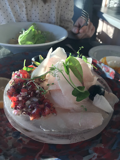 Read moreИнтерьер, музыка и официанты оставляют только положительные впечатления. Еда - не вся, некоторая слишком сложносочинная. Мы - любители более привычных вкусов и сочетаний. Горячие блюда (два вида рыбы на гриле, телячьи щёчки, пара супов) понравились, а вот итальянский салат, брускеты с лососем, утиный паштет и морс были странны. Не то, чтобы плохо, но на наш вкус некоторые ингредиенты портили итоговую композицию. P.S. С маленьким, ещё не бегающим, ребенком можно! Не супер удобно, но! Детский стульчик, удобные диванчики в зале, есть где пристроиться в туалете, чтобы сменить подгузник, не слишком шумно и я даже нашла подоконник в туалете, где можно при необходимости спрятаться за шторкой и...
