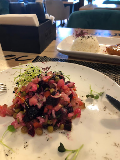 Read moreОбычное кафе. Ничем не выделяется. Есть гардеробная. На входе никто не встречает потому что за всё отвечает один человек. Он же гардеробщик, он же администратор, он же уборщик со столов. Предложить подходящий столик он не смог. Сказал чтобы сами выбирали какой видим свободным. В меню кухня разных стран вперемешку. Здесь, и итальянская кухня, и азиатская, и русская, и украинская, и американская. Про заведение нельзя сказать, что оно как забегаловка, но и до "ресто" недотягивает. Слишком всё просто и избыточно...