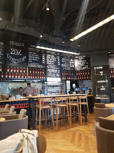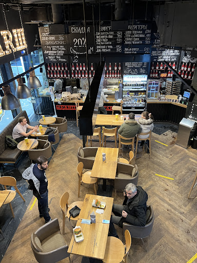 Наслышан был об этом заведении, на фоне этого было интересно самому попробовать эти бургеры. И тут недалеко от дома открылось это заведение, ну думаю это судьба. Первое что меня не сильно обрадовало это громкая музыка, ну тут ладно, дело вкуса. Сделали заказ, помимо бургеров заказали ещё кривые и салат. Итого оказалось что бургеры нам принесли за наш столик, а все остальное неуклонно было забирать самому в разных местах на прилавках. Или я чего-то не понимаю или это странно. Заказ один, так или принесити его целиком, либо позвольте мне его забрать в одном месте, а не так что кофе возьми оттуда, за салатом иди вон туда, а бургеры вам принесет. Ну а самое главное мое разочарование это бургеры и салат. Салат оказался замороженным как продают в продуктовых магазинах, но извините тут все же бургерная и от нее ожидаешь чего-то другого. Ну а бургеры вообще не удивили на фоне предыдущего похода в другую бургерную. На деле оказалась просто другая котледа, да, не спорю, она хороша. Но просто после нк одного хвалебного отзыва я ожидал со стула упасть от удивления от красок вкуса после укуса бургера, но по сути бургеры оказались пшиком, единственной отличительной чертой оказалась другая котлета. В общем и целом походом оказался расстроен, думал попробовать другой бургер, сходить в другое отделение этой бургерной, но в итоге передумал, когда несколькими этажами в этом тц есть бургерная на все 5 голов выше этой. Как-то...