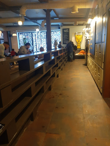 Некомфортная рассадка - сидишь не спиной к соседнему столику, а боком, из-за чего создаётся впечатление, что ты не со своей компанией, а за общим свадебным столом. Поэтому же абстрагироваться от разговоров соседей невозможно, слышно все так, будто они с тобой общаются. Так называемая живая музыка. Исполнители, видимо, не поняли, что пришли не в ночной клуб, а в место, которое люди посещают, чтобы пообщаться между собой. Поэтому вместо того, чтобы обеспечить приятный музыкальный фон, они в течение полутора часов орали так, что уши закладывало, а к концу их выступления у меня тоже сел голос, потому что приходилось орать (прямо в ухо, кстати) своему собеседнику, чтобы он хоть что-то услышал. Меню. Очень большой выбор пива, но это обманчиво. По факту оно продаётся объёмом 0,4 или меньше по цене 0,5 и ни один из сортов имеет яркого вкуса, все как-будто разбавленные, хотя официанты уверяют, что оно бутылочное. Сама еда средняя. Не плохо, но и восторга не вызвала. Итог: пафоса много, ценник призадран (повыше среднего), при этом некомфортная обстановка и сильно раздражающая своей громкостью живая музыка. В общем, я бы не...
