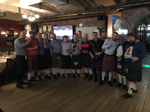 Довелось побывать в этом заведении на посиделках с коллегами 25 декабря. На сайте было заявлено, как "уютное, атмосферное место с приятной музыкой, настоящий английский паб". По факту из английского там осталось только название, королева и флаг на стене. Сначала я даже порадовалась убранству, но потом рассмотрела и поняла, что действительно хорошую работу дизайнера интерьеров напрочь убили новогодними снежинками, абсолютно безвкусными гирляндами и светящимися надписями.