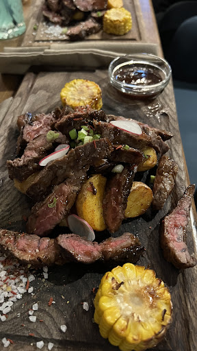 Read moreЗашли поужинать и выбрали именно это заведение, так как хотелось именно хорошо приготовленного мяса. Заказали два стриплойна прожарки медиум велл, это предпоследняя перед "подошвой", кто в курсе. Попросили официантку заказать нам мяса, чтобы уже начали готовить, а потом дозакажем салаты, которые планировали есть с горячим, но девушка проигнорировала, сказав , что мясо готовят быстро. В итоге долго сидели с салатами, в ожидании мяса. В остальном обслуживание было внимательным. Оба стейка принесли с кровью, это был даже не медиум, я стала уже есть то, что принесли, ибо могу есть и такую прожарку, и от голода)) , а вот подруга попросила доготовить до полной прожарки, и что вы думаете, в итоге ей вынесли через 10 минут "вел дан", но снова с кровью! Мясо было вкусным, но уважаемые мы просили ПРОЖАРЕННОЕ! В итоге испорченное настроение, потому что пришлось заплатить и есть не за то что хотелось, у подруги несварение. Если вы уже позиционируете с себя с мясным рестораном, хотя бы следите, чтобы повара готовили его профессионально. Мы всё таки платим деньги, а ценник у вас не низкий. Желания приходить снова нет. В других заведениях, за ошибки предлагают хотя бы скидку, или комплимент. Музыка, интерьер приятные, хостес приветливая,...