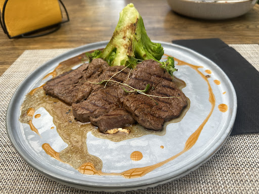 Посоветовали знакомые данное заведение ( не понимаю что я сделал им плохое ) интерьер обычный но это не суть. Самое ужасное это еда. Заказали вырезку гриль ( все холодное мясо сухое холодное еле прожуешь) . Бефстроганов( положили рядом огурчики каторге воняли и были адски кислые тухлые огурцы 👍 специй нет все пресное ) . Жульен из лисичек дико пережаренный блин каторгой маслом даже тек ) . Салат с баклажанами единственное что можно было доесть и пасту со спаржей и ростбифом ( это вообще дикий ужас . Опять все холодное . Макароны как в столовке пригласил официантку чтобы спросить почему такого качества еда и почему все холодное она унесла и разогрела в микроволновке 🤦♂️) готовят очень долго было занято всего три стола до первой подачи блюд прошло около 40 минут 👍 больше ни нагой в это заведение . В итоге голодные пошли в другом месте кушать. Хотите сходите но мой совет поищите другие заведения отдать 4000 за еду которую Собаки есть не...