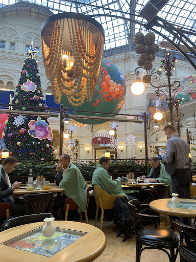 This place exceeded my expectations. It's in the GUM (one level up), and I thought it would be very expensive, but for Moscow standards it was fine. The coffee was outstanding - they had almond milk and a cortado! And perfectly prepared.