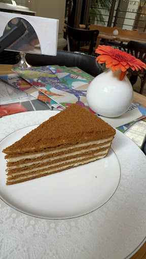 Maybe even more important to mention: the service. Moscow, probably like any metropolitan city, has its fair share of grumpy service without any real motivation to help you. But these fantastic people go out of their way to make your breakfast, lunch or dinner, or just tea, a comfortable and tasty experience. They speak English very well, will ask you (without prompting) for your particular preferences ("our borsch is cold because it's warm, is that okay for you?" or "the V5 comes with red and green raw onion, would you rather like your dish without?"), it was a breath of fresh air.