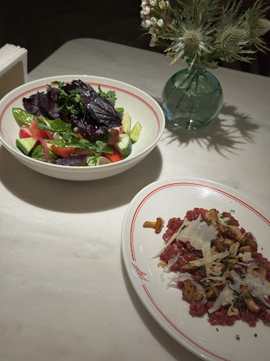Свой отзыв, на тему полученных впечатлений, от посещения этого заведения, стоит начать с особой концепции данного места. Если вам наскучили «концептуальные» кулинарные места, в которых вам не хватает собственной атмосферы, то вам будет полезно обратить внимание на предмет моего отзыва. Достойный пример когда гастрономическое место дополняет район в котором оно находится. Данная гармония, созданная путем созидания всей команды, и даёт тот самый результат, о котором мне хочется поделиться с вами. Имел удовольствие впервые посетить данное место, незадолго после открытия, встречают тепло, усадив за стол, учтиво предлагают аперитивы, усевшись за стол, мне успели рассказать и порекомендовать аперитив, был удивлен, понравилось, возможно, это учтивость официанта, а может и заслуга кухни, но скорее синергия. При проведении деловой встречи, небольшой, но всё-таки плюс, приятная, не забивающая голову музыка, приятно. Теплый салат с телятиной, паста с лисичками, испанский падрон и пиво, таков был мой обед. Всё было вкусно, отмечу карамельный вкус очень хорошо дополнял салат. Паста была будто домашняя.