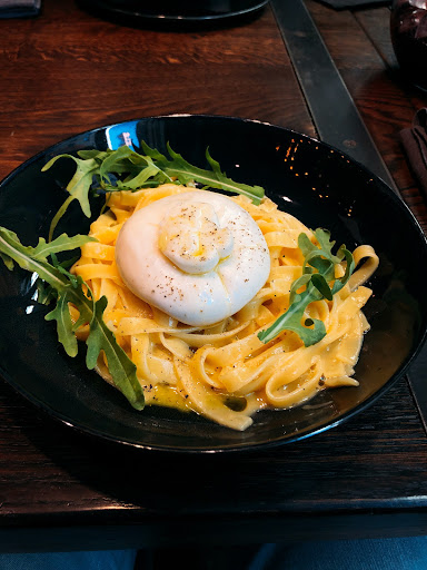 Read moreОчень вкусное заведение! Интерьер спорный, грубоватый, но стулья удобные, кстати (которые обычные, а не барные). Но кухня здесь решает и она отличная! Были во время Ресторанного фестиваля и брали предложенный сет, который по порциям оказался полной версией блюд меню, а не дегустационной урезанной версией. Таратар великолепный, а по тартару как раз можно быстро сложить впечатление о кухне ресторана. Очень хорошо к нему подобран грибной аккомпанемент. Буррата тоже прекрасна с тонкими нотками трюфеля. Утка нежная, возможно стоит добавить какой-то вкусовой акцент, но она вполне хороша в своей простоте. Очень интересный чизкейк, он не из стандартной филадельфии, а из страчателлы с плотной волокнистой структурой. Я бы вполне рекомендовала место для вкусного обеда или ужина и посиделок в приятной веселой компании.
