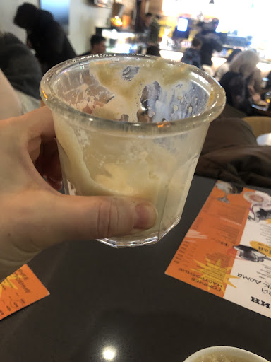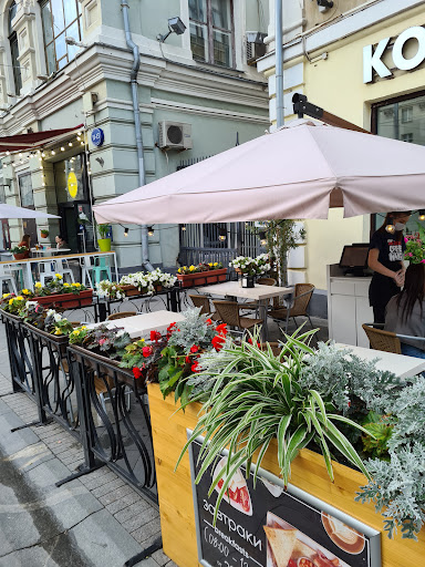 Read moreИз позитива только то, что кто-то из персонала здоровается с входящими. Остояли очередь, оплатили заказ. Присели, через минут 10 подходит персонал - не прошла оплата, а мы уже думали заказ готов. Оплатили повторно (первоначально также была снята оплата с карты). Попросил чек с отказом. Опять ждём, пришлось идти спрашивать и торопить. Персонал вольно - шатающийся, бариста с кольцом в носу, которое мешает думать, и прыщиках, которых в данной работе быть не должно. Вышел менеджер. Вопрос не решил. В белых кроссовках - но черных от грязи, как трубочист. Принимать пищу уже перехотелось. В зале молодые люди с ноутбуками, видимо друзья менеджера, так как со всеми посидел, поговорил, поздоровался. Принесли заказ. Кофе при заказе - без выбора обжарки. Просто льют из "кадушки"- арабика эфиопская или того хуже, кислющий, как с лимоном. И это в центре, в пятницу, настроение хорошее осталось перед входом в кафе. Согражадане, если есть у вас выбор -...