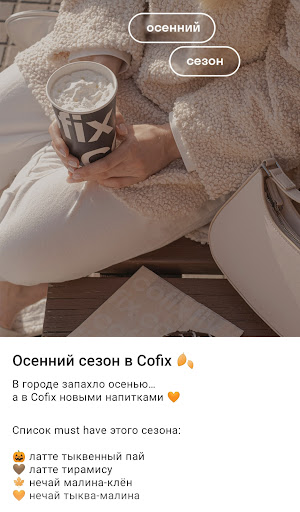Read moreДо этого лета был одним из лучших cofix в городе, летом вместо весёлых студентов с необычной внешностью наняли на работу исключительно парней из ближнего зарубежья, которые включают вместо плейлиста cofix свою музыку (в стиле шашлычной на окраине Сочи) и делают паленый кофе (перестала покупать его в этой кофейне). Верните...