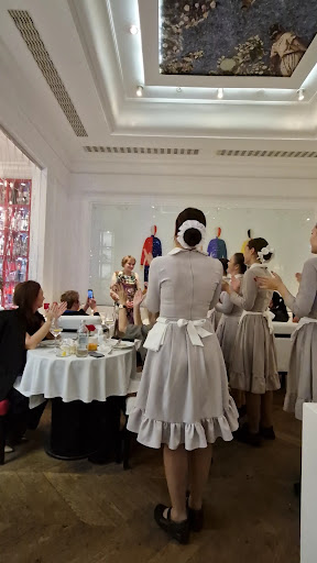 Terrible disappointment! A Sacher Café wannabe in an eclectic Soviet Russia style, but lacking any nobility or friendliness of a respectable Grand Café. - The waiter dropped some pie filling on my handbag, while cutting the pie and struggling to explain why the place was called Jhivago (I haven't noticed that until we finished, and then unsurprisingly found a nasty fat stain on the fine leather). - The kulebyaka fish pie itself was a shameless way to reuse old crepes to wrap up the fish and thus provide a separation for the layers, hence its strange sweet taste (and heavy heartburn half an hour later) - a proof is attached 🤷🏻‍♂️ - Finally, the Russian salad (a la Olivier) was too salty and no porchini mushrooms were in our fried potatoes ( they arrived later after we pointed out the mistake). - The guests are a totally different story - but, believe me, it's not worth experiencing it in person. The verdict is unequivocal - avoid. There are many authentic Russian dining options around Moscow, but this "stolovka" isn't one of them by any account.