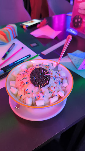 Самое красивое было мороженое — оно на фотке. Но на вкус это отвратительно, увы :( за 600-700р получила тарелку с горой ледяной стружки( знаете, как растаявшее мороженое, которое пытались перезаморозить.. Оно как снег. При том ОЧЕНЬ холодное и крайне безвкусное. При таянии превратилось в лужу подкрашенной молоком воды. Ну то есть за такие деньги нельзя было сделать мороженое на 100% из молока/сливок? Загадочно. Конкретно этим пунктом разочарована.