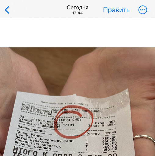 Подлог. Заказал Jinro (Южная Корея), но подали Sibsa (Россия) без предупреждения. В чеке позиция указана как "Jinro", хотя разница в стоимости между марками достигает ~3.5 раз (сравнение с розницей и другими заведениями).